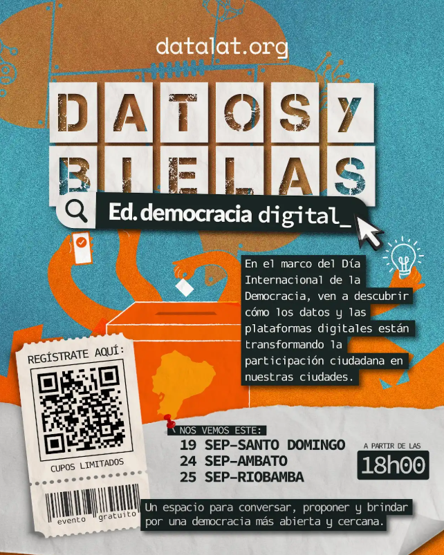 En el marco del Día Internacional de la Democracia, abrimos un espacio para conversar y descubrir cómo los datos y las plataformas digitales están transformando la participación ciudadana en nuestras ciudades. Un encuentro para proponer, debatir y brindar por una democracia más abierta y cercana.
