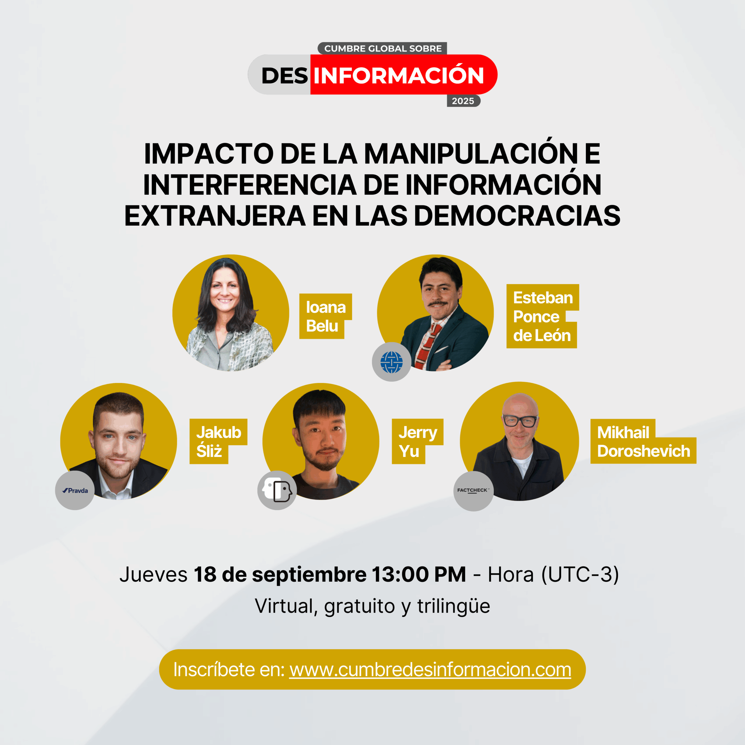 La CUMBRE GLOBAL SOBRE DESINFORMACIÓN es un espacio de interacción global donde anualmente se reúnen periodistas, investigadores, académicos, fact checkers, referentes de medios y gobiernos, organizaciones de la sociedad civil, profesores y estudiantes para debatir, presentar acciones, propuestas y casos de éxito sobre los desafíos en la lucha contra la desinformación a nivel global.