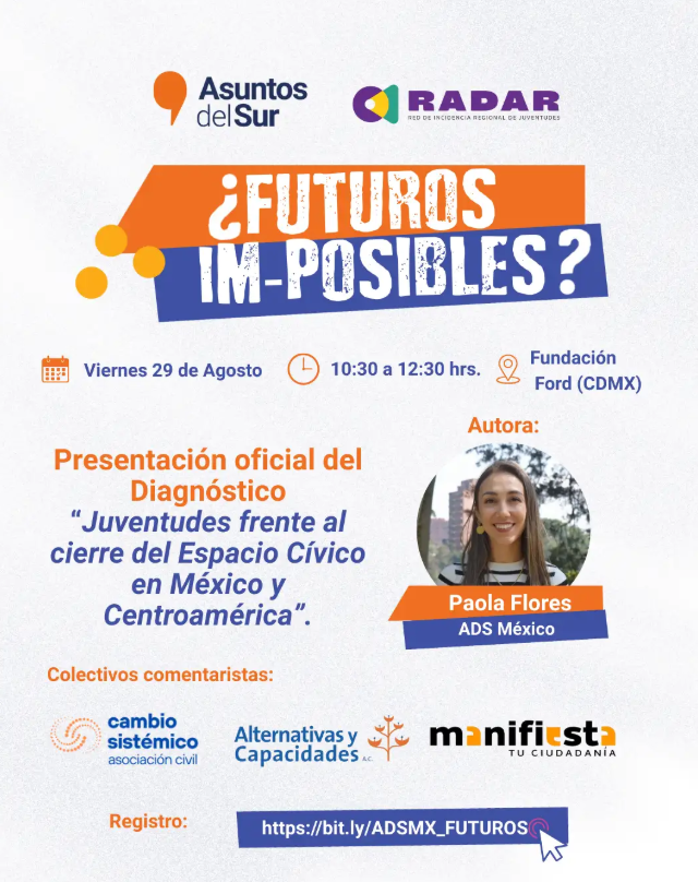 En un contexto regional marcado por la desinformación, el individualismo creciente y la reducción del espacio cívico, este evento invita a las personas participantes a habitar la democracia como una práctica colectiva, vital y cotidiana. Entendemos el cuidado de los vínculos, las comunidades y lo común, como un acto profundamente político. Frente al miedo y la fragmentación, este encuentro propone un espacio de reflexión crítica sin cinismo, de imaginación colectiva sin ingenuidad y de resistencia cívica sin desesperanza, en el que las personas puedan pensar juntas, dialogar y proyectar alternativas democráticas.