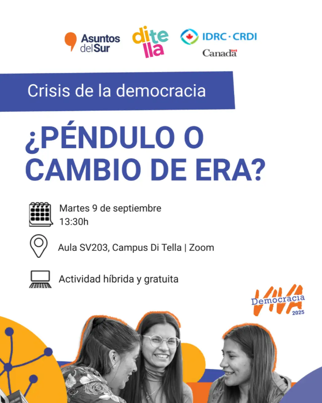 En la Universidad Torcuato Di Tella, Asuntos del Sur y el International Development Research Centre (IDRC) organizaron el conversatorio “Crisis de la democracia: ¿péndulo o cambio de era?” en el marco de #DemocraciaViva2025. La jornada reunió a activistas, periodistas y académicxs en dos paneles complementarios: uno dedicado a la resiliencia democrática desde una perspectiva global, donde se compartieron experiencias y teorías sobre la erosión de la democracia y las prácticas que permiten sostenerla; y otro enfocado en la Argentina, que analizó si el país cuenta con capital democrático suficiente para resistir narrativas autoritarias y altos niveles de polarización. La principal conclusión fue que la resiliencia democrática no puede darse por sentada: requiere acciones sostenidas desde las instituciones, los liderazgos políticos y la ciudadanía organizada.
