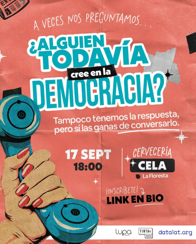 Para este evento Tinta Digital, Lupa Media y Fundación Datalat se juntaron para crear un evento con líderes de opinión en Ecuador para platicar sobre la democracia, su importancia y reflexionar junto a la ciudadanía sobre lo que podemos hacer.